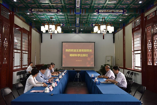 在聽取了科學出版社黨委書記、董事長林鵬做的工作匯報后,王恩哥指出,科學出版社近年來發(fā)展很好,有著鮮明的特色,也做了很多前瞻性的布局,值得肯定。未來面對激烈的行業(yè)競爭,要做好以下三方面工作:一是要牢牢依靠中國科學院,深度挖掘院內(nèi)資源,思考策劃一些好的項目,打造特色化精品力作,更好地服務科技創(chuàng)新。二是要堅持國際化發(fā)展,建議與院海外科教中心建立聯(lián)系,合作開拓所在國家或者地區(qū)的市場,走向世界。三是要走專業(yè)化發(fā)展道路,培養(yǎng)造就專業(yè)化人才隊伍,讓專業(yè)的人來做專業(yè)的事。王恩哥表示,將積極支持科學出版社參與懷柔科學城建設,提前做一些戰(zhàn)略性布局;他還表示作為《科學通報》(英文版)新任主編,會積極支持和推動該刊的發(fā)展。
